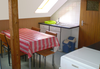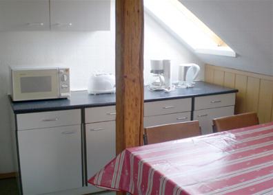 Die Gemeinschafts-Küche mit Herd, Kühlschrank, Mikrowelle, Kaffeemaschine etc.